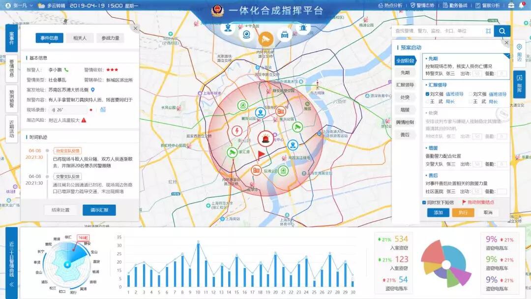 在剛剛過(guò)去的2019年,我們與上海市公安局合作開(kāi)發(fā)的“風(fēng)洞”系統(tǒng),打通了市局、分局、派出所和一線警力,順利完成了第二屆中國(guó)國(guó)際進(jìn)口博覽會(huì)的安保工作。同樣在2019年我們還圓滿完成了福州數(shù)字中國(guó)峰會(huì)、武漢軍運(yùn)會(huì)等一系列重大活動(dòng)的安保支撐任務(wù),得到了各級(jí)領(lǐng)導(dǎo)和實(shí)戰(zhàn)應(yīng)用單位的肯定。
